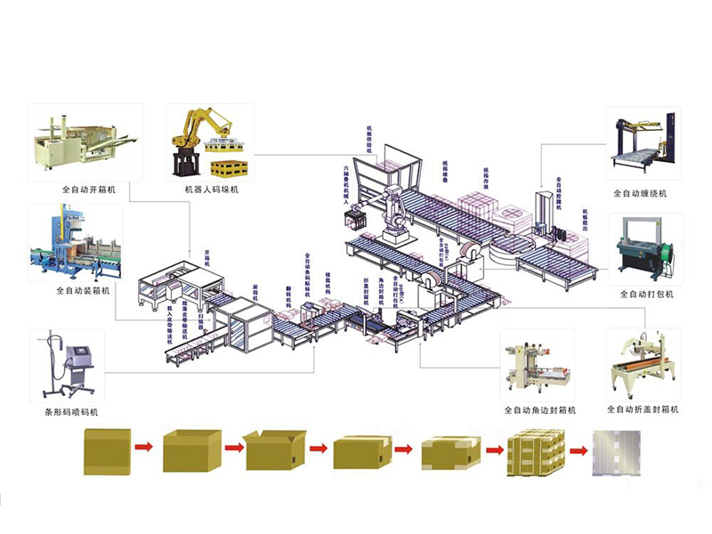 該自動包裝流水線是集紙箱自動成型、自動封箱機(jī)、自動打釘、自動“井”字型打包為一體。應(yīng)用范圍廣、占地面積小、性能穩(wěn)定、操作簡單,大大減少勞動力,提高生產(chǎn)效率,降低生產(chǎn)成本。為國內(nèi)數(shù)十家大型知名企業(yè)選用??筛鶕?jù)客戶不同的包裝要求進(jìn)行個性化設(shè)計、制造。